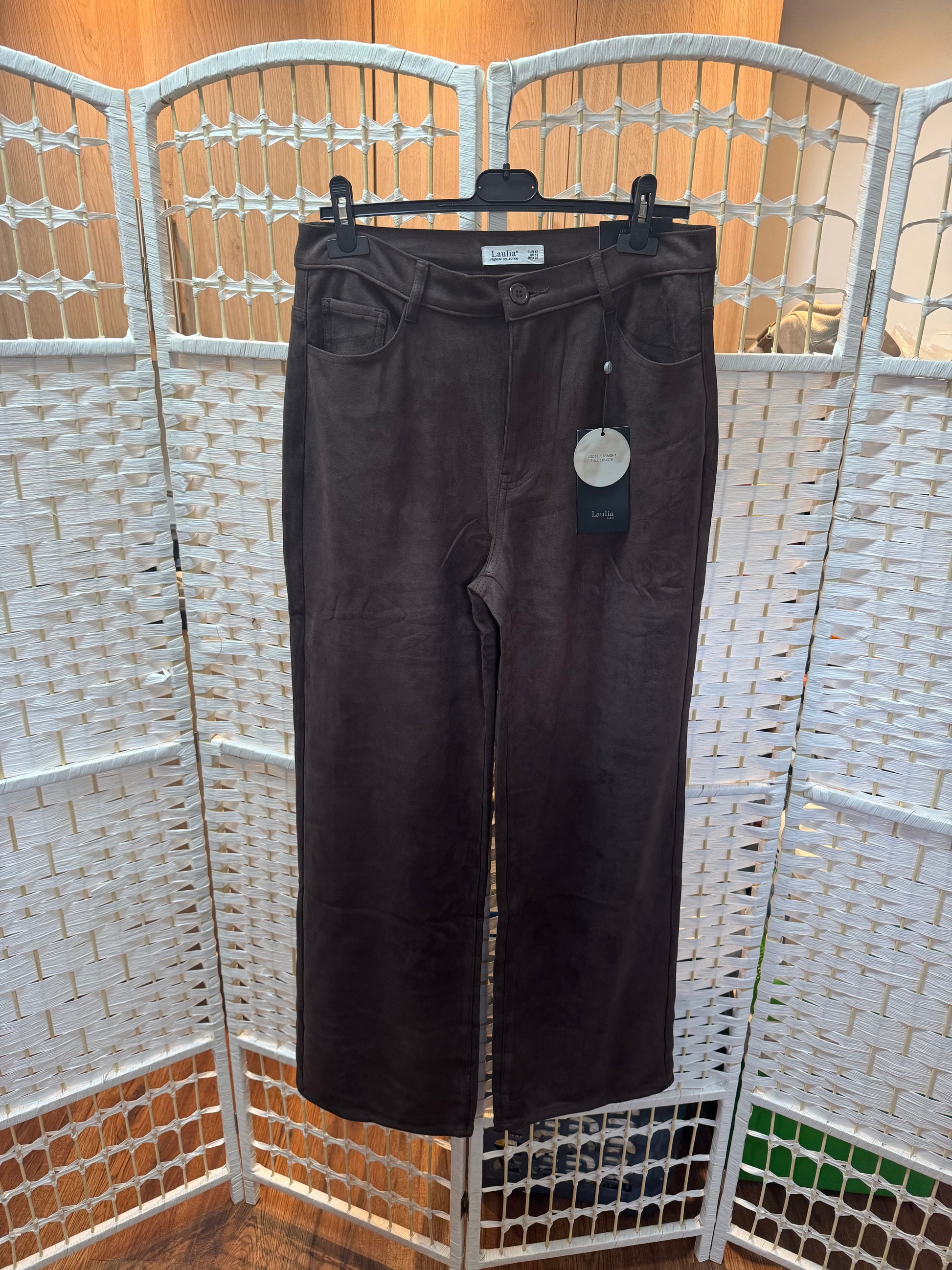 Ava Chocolate Brown Faux Suede Wide Leg Trouser
