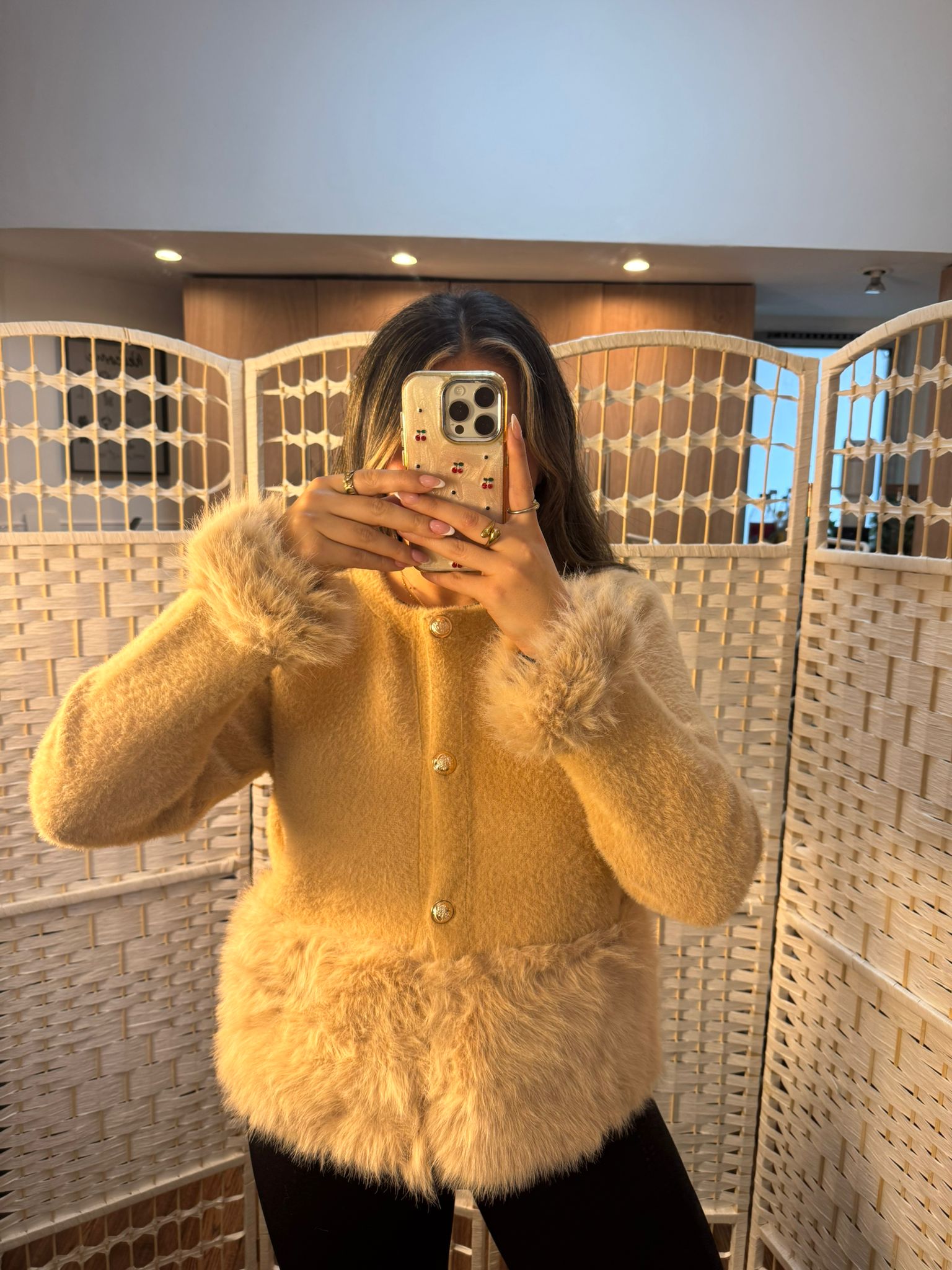 DEMI Faux Fur Lined Bottom Cardigan Tan